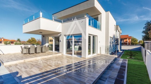 Izvanredna vila s 4 spavaće sobe i modernim dizajnom blizu centra Poreč Predstavljamo vilu koja prekrasno kombinira modernu arhitekturu s mediteranskim okruženjem, smještenu u mirnim predgrađima Pore...