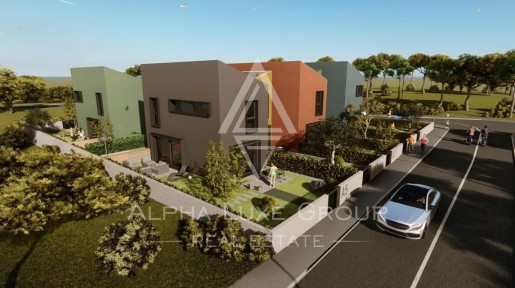 Lijepe i moderne kuće u izgradnji s pogledom na more. Istra,...