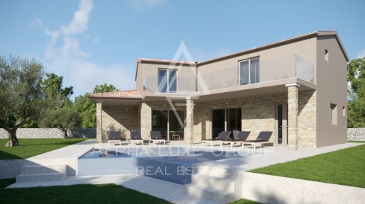 ALPHA LUXE GROUP prodaje Villu u izgradnji udaljenu 15 km od centra Poreča. Kuća se sastoji od 2 etaže: prizemlja i kata. Kuća je površine 189 m2 s 609 m2 okućnice. U prizemlju se nalazi dnevni borav...