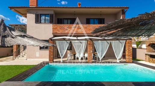 Prodaje se vila s bazenom ukupne površine 180 m2 raspoređena na dvije etaže, prizemlje i kat i 470 m2 okućnice. Kuća se sastoji u prizemlju od kuhinje s blagovaonicom, dnevnim boravkom iz kojih se iz...