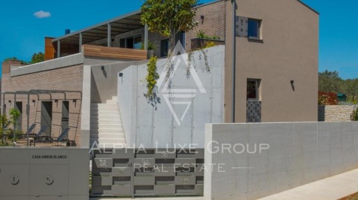 U malom idiličnom mjestu u blizini Višnjana smještena je ova predivna vila moderne arhitekture. Ravne linije,velike ostakljene površine i opuštajuće boje daju ovoj vili posebnu eleganciju i izniman ša...