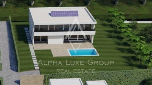 Moderna vila s bazenom okružena zelenilom i pogledom na more...