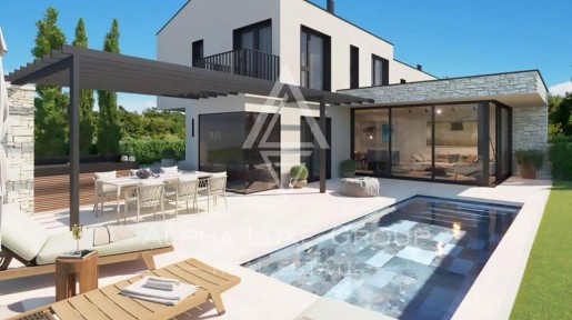 Poreč, Nova vas - Moderna dvojna kuća s bazenom Predstavljamo prodaju moderne dvojne kuće u izgradnji, smještene svega nekoliko minuta od centra Poreča, Nova vas, i samo 1 km od plaže. Nekretnina je ...