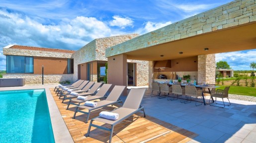 Vrlo lijepa villa proteže se na 230 m2 stambene površine, na okućnici od 1.000 m2. Ista se sastoji od četiri spavaće sobe, svaka ima svoju kupaonu s toaletom, moderno opremljene kuhinje, predivne bla...