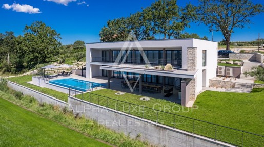 Istra, Grožnjan: Luksuzna vila s pogledom na rijeku Mirnu i more Na prodaju: Izuzetna, novoizgrađena vila iz 2023. godine, smještena u blizini Grožnjana i Buja u Istri, na parceli od 1.728 m². Ova im...